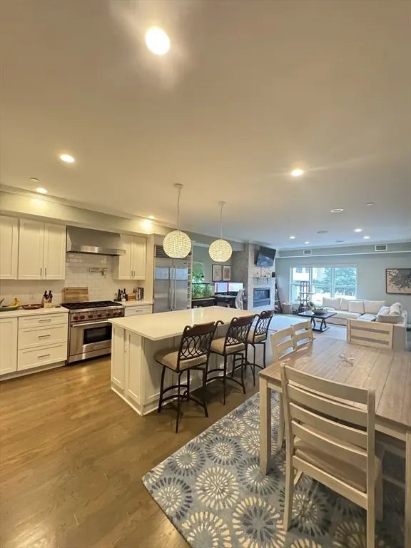 FURNISHED SHORT-TERM WINTER RENTAL. Beautiful two-level condo located in the heart of Southie. Enter into an open concept kitchen, dining, and living area with gas fireplace, chef's kitchen equipped with a 36" Subzero fridge, 36" Wolf Range, microwave drawer, large island with wine fridge, and Asko dishwasher. Also on the main level you will find a half bath, washer/dryer, and the first bedroom equipped with an ensuite bath and sliding doors to the private deck/patio. Upstairs you will find the second bedroom with large walk-in closet and second full ensuite bathroom. One garage parking space & ALL utilities (gas, electric, wifi) included.