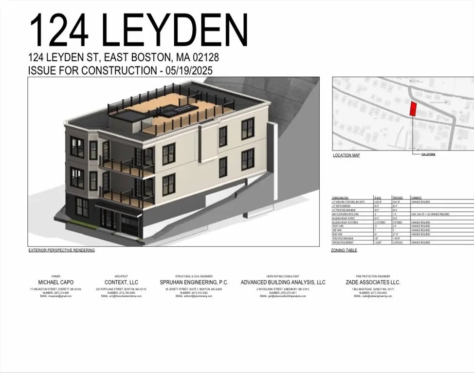 Permit Ready! Attention all developers, investors and contractors! Find your next project at 124 Leyden Street located in East Boston's Orient Heights neighborhood. This vacant lot is ZBA approved with full set of plans and permit ready to build a 3-story structure with 4 units including parking and a lyft. Proposed unit mix includes (2) Two Bed / One Bath with private balconies and (2) Two Bed / Two Bath with private roof decks. Great opportunity to enter Eastie's condo market with newer construction developments nearby as solid comps. Location has easy highway access to route 1A (I-90 / I-93) and is 0.3 miles from Orient Heights MBTA with direct access to Downtown Boston. Under 6 minutes to Jaliscos Taqueria, Renegades Pub and Caffe Dello Sport Eastie!