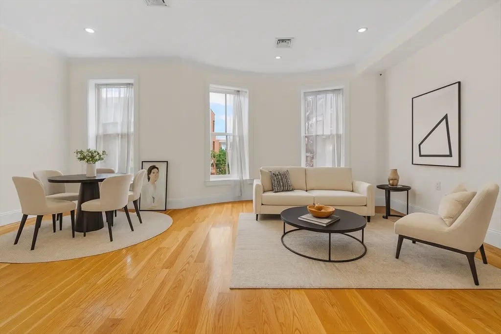 Tucked inside a classic South End brownstone, this sunlit second-floor home with high-ceilings blends historic charm with modern comfort. The bow front windows pour natural light into the living space, where warm hardwood floors and recessed lighting create an inviting atmosphere. An open layout offers a flexible dining or home office nook, while the kitchen’s stainless steel appliances, gas stove, and timeless design make cooking a pleasure. When it’s time to unwind, step onto your west-facing private deck — framed by leafy trees and ivy-covered brick — for coffee or sunsets. With in-unit laundry, central air, and a low $398 quarterly HOA, it’s a rare mix of character, convenience, and low-maintenance living in one of Boston's most iconic neighborhoods. Just around the corner, you’ll find beloved spots like Toro, Jaho Coffee, and Flour Bakery, plus easy access to public transit and downtown.