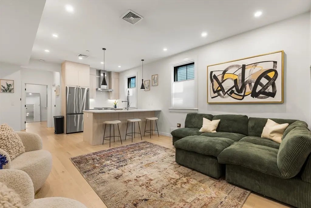 Welcome to this stunning 2 bed, 2 bath condo in highly desirable & charming Eagle Hill neighborhood. Built in 2022, this bright, modern condo is absolutely one of the best values in the East Boston neighborhood currently! Step inside & find soaring ceilings, gleaming hardwood floors & an open-concept layout. The chef’s kitchen features quartz & granite countertops, a pantry closet, gas cooktop, Samsung S/S appliances, an oversized peninsula & high quality cabinetry. The open kitchen & living areas, make this a great space for entertaining. The primary suite offers privacy & comfort w. a walk-in closet & a luxurious en-suite bath complete w. a double floating vanity. The 2nd bedroom is generously sized; great home for 2 roommates, or at home office or gym. Both bathrooms are beautiful. Benefit from energy efficient systems, low condo fees, plus full-size in unit laundry. Easy access to the T (Maverick), East Boston Waterfront, Ferry to Seaport, shopping, various cuisines & major routes.