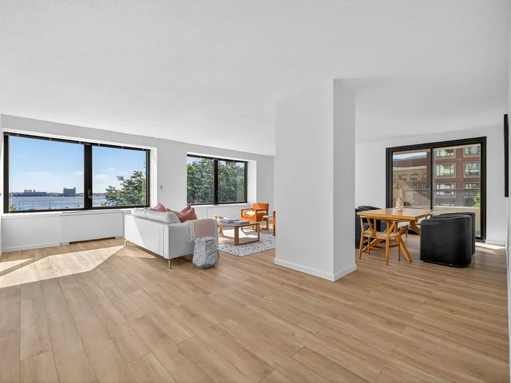 Live in Luxury. This spacious residence features dramatic Harbor and City Views, beautifully renovated 1600+ sf rarely available F unit, two bedroom, 2.5 bath home. A bright and airy, large corner living room with a wall of windows overlooking Boston Harbor, the airport and the ocean beyond. Private balcony with southern views of the pool. New designer kitchen with gas cooking, 2 new luxurioius marble full bathrooms and new powder room off the entry foyer. Hardwood through out. Both bedrooms are King sized, abundance of storage, rare, in unit laundry. A real gem on Boston's historic Waterfront. Sit in your living room and enjoy sparkling morning sun and the reflection of evening lights over Boston Harbor. All in a luxury, full-service, concierge building offering city living at its best. Seasonal harbor side in ground heated pool and BBQ. By appointment.