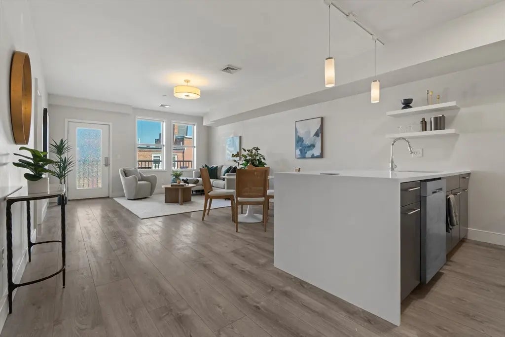 Located in the heart of Jeffries Point, this 3 bedroom/2 bath home combines modern design and thoughtful functionality with high end finishes throughout. Built in 2018 and customized with upgrades, this corner home has everything you're looking for! The open-concept kitchen features Caesarstone countertops, stainless steel appliances and the adjoining dining & living areas offer plenty of space for entertaining with direct access to a private balcony. The primary bedroom comfortably fits a king bed and features an en-suite bath while the other two bedrooms are equally well proportioned - one with a custom built-in Murphy bed. Additional amenities include central AC, in-unit laundry, garage parking and professional management. Directly across from the Greenway, and just around the corner from Maverick Square/T stop, this home puts you right in the middle of the best East Boston has to offer - from great local restaurants, multiple forms of transit, beautiful parks and the waterfront.