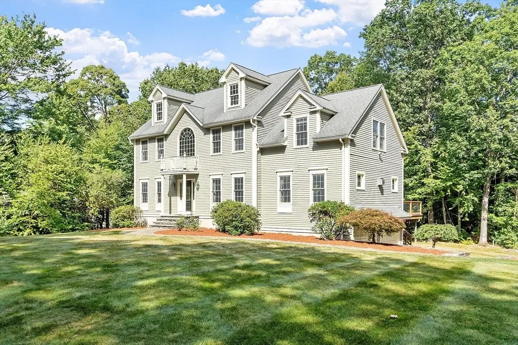 Tucked in a quiet neighborhood, this stunning young Colonial welcomes you with a stone walkway and a covered front porch. Inside, enjoy a sun-filled, open floor plan with high-end finishes, beautifully designed, multi-functional living spaces that evolve with your lifestyle. The chef’s kitchen features stainless appliances, granite counters, center island, and a well-appointed butler’s pantry with wine cooler, prep sink, and ample storage. It flows into a spacious dining area and a warm family room with floor-to-ceiling stone gas fireplace and cherry built-ins. Step onto the mahogany deck overlooking a large, private yard—perfect for entertaining or relaxing. A quiet home office offers private workspace. The luxurious primary suite includes a spa bath with soaking tub, glass shower, double granite vanity, and custom walk-in closet. A walk-up attic with skylights adds bonus space, and the expansive unfinished basement is ideal for a home gym or storage.