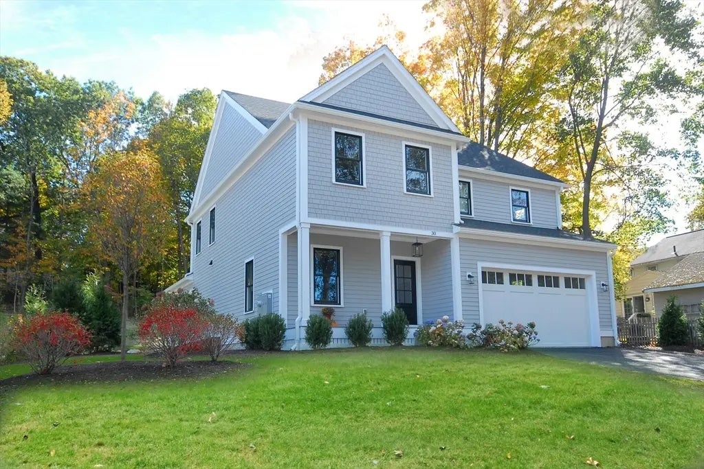 GPS 1053 Main St Walk to everything location, shops, restaurants, Bruce Freeman rail trail, Rideout Playground and the commuter rail. The first of 5 homes to be built by EMS Development. Three finished levels offering 5 bedrooms, including a first-floor primary, 4 full and 2 1/2 baths. The heart of the home is a thoughtfully designed chefs' kitchen with Thermador appliances, prep pantry, and a hickory center island. The open floor plan offers a fireplaced family room and dining area with lots of natural light and 9-foot ceilings. The second floor has 4 bedrooms including an en-suite and gorgeous primary with spa like bathroom. The lower level is also complete with a large playroom, workout room and half bath. Move in ready this home welcomes you in time for the holidays.