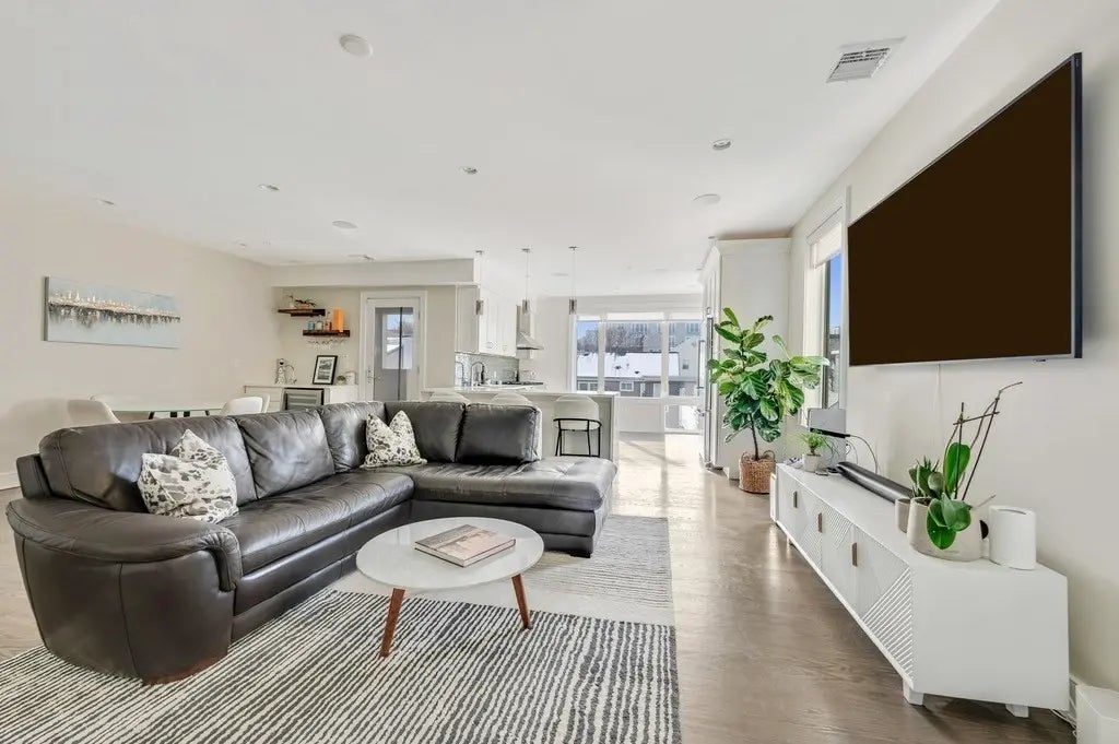 This stunning back corner unit boasts over 1,500 square feet of beautifully designed living space, illuminated by natural light streaming through 14 windows. Bask in all-day sunshine or unwind on your spacious private deck—ideal for both relaxing and entertaining. You'll also enjoy access to a generous common roof deck offering panoramic city views. Inside, the open-concept layout features a stylish beverage bar complete with a built-in wine fridge, making it perfect for hosting. Both bedrooms include oversized closets, providing plenty of storage. The primary suite is a true retreat, with enough space to accommodate a home office or cozy reading nook.Additional perks include garage parking and unbeatable proximity to everything the city has to offer. This one is not to be missed! 2nd garage parking space is rented but paid for the year. If you would like to keep it, $300 a month. The building offers a dog run off the lobby for the cold winter nights!
