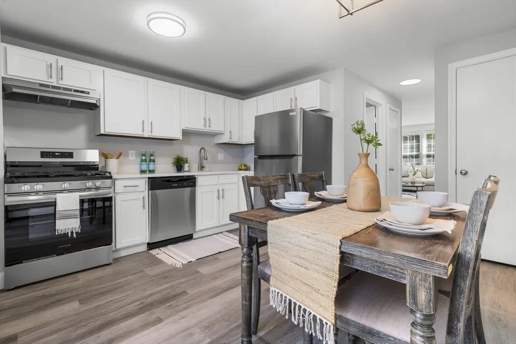 Welcome to 90 Roper St! This stunning end-unit townhouse has been freshly updated from top to bottom—there’s nothing to do but move right in. On the first floor, you’ll be greeted by a bright and airy living room with recessed lighting, a beautifully remodeled kitchen featuring quartz countertops, white shaker cabinets, brand-new stainless steel appliances, and an eat-in dining area. A convenient half bath completes this level. Upstairs offers a spacious primary bedroom, a second bedroom, and a tastefully renovated full bath. The finished basement provides versatile space—perfect for a home office, playroom, or family room. Additional updates include new LVP and carpet throughout, recessed lighting, new windows, fresh paint, and laundry in the basement. Enjoy outdoor living with private deck, green lawn and 2 assigned parking spaces. Fantastic South Lowell location close to highways, shopping, restaurants, and more. Showings begin Friday. Open Houses: Saturday 11–1pm & Sunday 12–2p