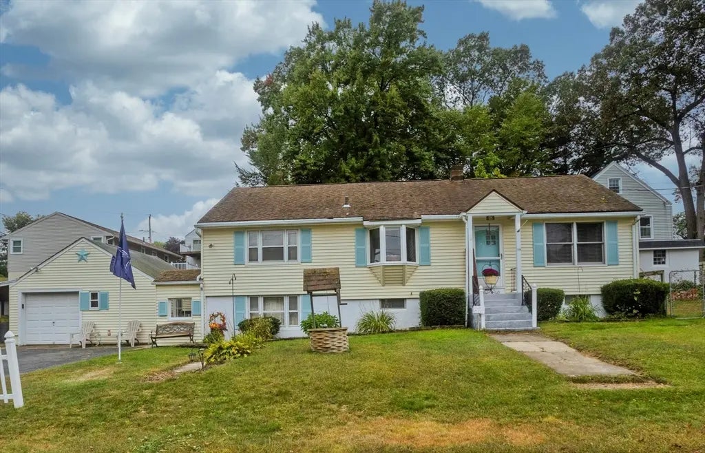 A sweet retreat! This charming ranch has a cottage core flair that makes you feel right at home! Great space for entertaining in the open living/dining room with lovely new laminate flooring. The kitchen is the heart of the home with its white cabinets and soft, serene blue accents. All appliances are being left for the new homeonwer. The primary bedroom has a stylish and attractive accent wall. You will appreciate the additional family room in the partially finished lower level with walk-out, as well as loads of storage space. Plenty of room for gardening and even more space for entertaining in the covered/screened porch attached to the large shed. If you like to putter, the oversized one car garage has an attached covered storage area, as well as a workshop and half bath! Convenient location within short distance to highways, shopping, schools and more.