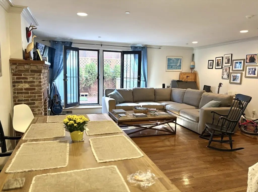 Rarely available, 1 bed/first floor with private patio, decorative fireplace and 2 baths (one is half bath) available 11/1 and one parking space available $450/mo (Nov-April).Brand new central AC, hardwood floors and high ceilings in this floor thru apartment! This one-bedroom, one-and-a-half bath floor thru home features gorgeous hardwood floors, recessed lighting, and French doors that open from the living room onto your own private brick patio surrounded by beautifully landscaped trees. The spacious front facing bedroom boasts three windows with natural light filtering through landscaping, plus two full closets and plenty of storage throughout. The chef's kitchen offers abundant space for cooking and entertaining. Located on coveted Beacon Street in a boutique four-unit Brownstone, you're just blocks from Prudential Center, Newbury Street shopping, and the Esplanade where you can enjoy Charles River views, sailboats, and spectacular sunsets year-round. Dog-friendly (one welcome)