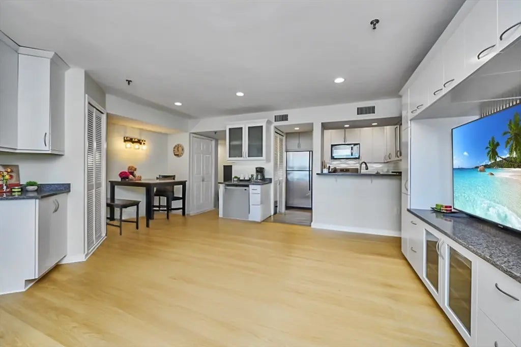 Stylish 2-Bed, 2-Bath upper-level condominium on the Brookline line in Allston. This move-in ready home features brand-new flooring, an updated kitchen with quartz countertops and stainless steel appliances, fresh paint, Nest thermostat, in-unit laundry, deeded garage parking (space #69), and extra storage (space #45). Enjoy an open living area with a private balcony and views of the Boston skyline. The spacious primary suite offers large double closets and direct balcony access. A versatile second bedroom works equally well as a guest room or home office with a pleasant window view. Recent upgrades include new windows, heat pump, A/C, and washer/dryer. Residents enjoy a host of amenities, including an indoor pool, fitness center, sun deck, racquetball court, and elevators. Situated in a prime location, you'll enjoy quick access to the Green Line, Coolidge Corner, Longwood Medical Area, downtown Boston, and more—plus vibrant shops, supermarkets, and restaurants are all just steps away