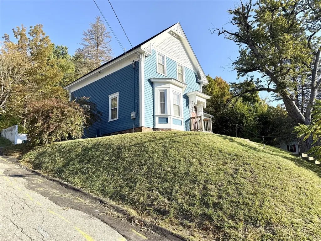 Antique Farmhouse on a corner lot! 3 BEDS AND 3 BATHS. Beautiful open kitchen with GRANITE countertops, a KITCHEN ISLAND, recessed lighting, breakfast bar, and exterior access to the porch where you can enjoy your morning cup of coffee! Formal dining room with H/W FLOORING. Bright and sunny living room with a bay window, HARDWOOD FLOORS, and more recessed lighting. Convenient 1st-floor laundry, full bath with tiled stand up shower to complete level 1. Upstairs provides a PRIMARY BEDROOM with plush wall to wall carpet and FULL BATH WITH GRANITE VANITY AND TILED SHOWER. 2 ADDITIONAL BEDROOMS with w2w carpet, plus OFFICE/PLAYROOM, and another FULLl BATH to round out this level. The exterior offers plenty of YARD and parking space with some gardening areas. Newer HIGH EFFICIENCY BOILER, WIRING, ROOF & WINDOWS! Close to public transportation, trails, conservation area, schools, and more. Sold AS-IS.