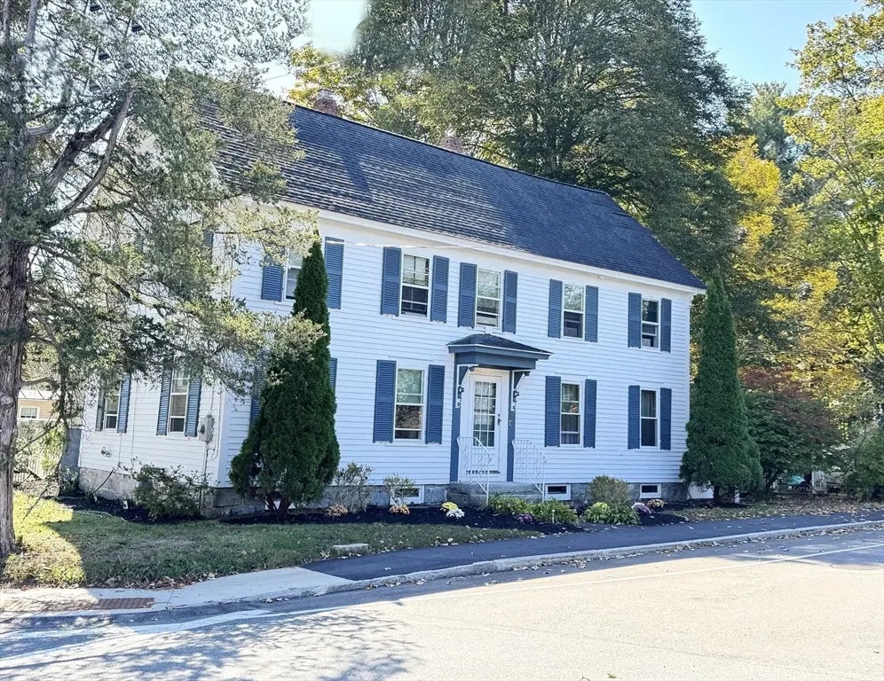 Motivated Seller! Classic Colonial with timeless charm and thoughtful updates. Step inside to find spacious rooms, gleaming wood floors, and a front-to-back fireplaced living room with a separate dining room. The center island kitchen features stainless steel appliances, NEW dish washer, gas cooking stove top/ electric oven, a pantry closet, and opens to a sun-filled three-season porch. The first-floor laundry includes a NEW stackable washer /dryer with a 10-year warranty, and the room offers flexible use—perfect for hobbies or a potential 4th BEDROOM. A convenient half bath completes the main level. Upstairs showcases wide pine floors, 3 generous bedrooms, and a beautifully updated full bath. Recent updates include a young roof, hot water heater, replacement windows, blown-in insulation, 200-amp electrical service, and new garage doors. Outside, enjoy a level lot with garden space, patio, and a private well for watering. Ideally located near highways, shopping, and recreation areas.