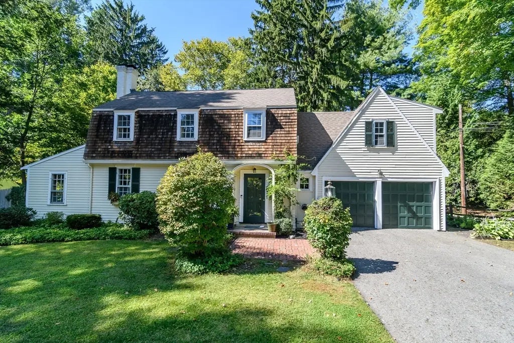 This timeless Gambrel Colonial, set in Wellesley Farms, combines classic New England charm with modern comfort. The home’s distinctive roofline, cedar shingle accents, and welcoming entry are framed by mature landscaping and a brick walkway. Step into the interior, where a sun-filled foyer leads to a living room with a fireplace and an open dining room, both featuring French doors that open to the yard. The bright white kitchen features stainless steel appliances, soapstone countertops, and a peninsula, along with an expansive picture window that overlooks the private grounds. Upstairs, four bedrooms offer flexibility for family, guests, and/or a home office. The backyard oasis features a sparkling in-ground pool, a generous patio, and lush plantings—perfect for entertaining and relaxing. There is also a finished lower-level bonus space and a two-car garage—steps away from Brown Field and the park, and just minutes from commuter routes and rail.