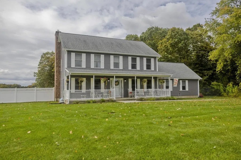 Welcome to this beautifully maintained 4-bed, 3-bath Colonial set on a private 2.29-acre lot. The bright open floor plan features gleaming wood floors, a cozy fireplace, and a kitchen with newer stainless appliances. Upstairs, the primary suite offers a walk-in closet, full bath with jetted tub, and a private balcony overlooking the scenic yard. The finished basement includes three extra rooms perfect for offices, guests, or hobbies. Outside, relax on the spacious porch or in the hot tub while enjoying peaceful views of the fenced yard bordered by trees. Featuring a newer furnace (less than 4 years old), instant tankless hot water system, and seller-owned solar panels for incredible energy savings. So many additional features to list—this home is a must see!