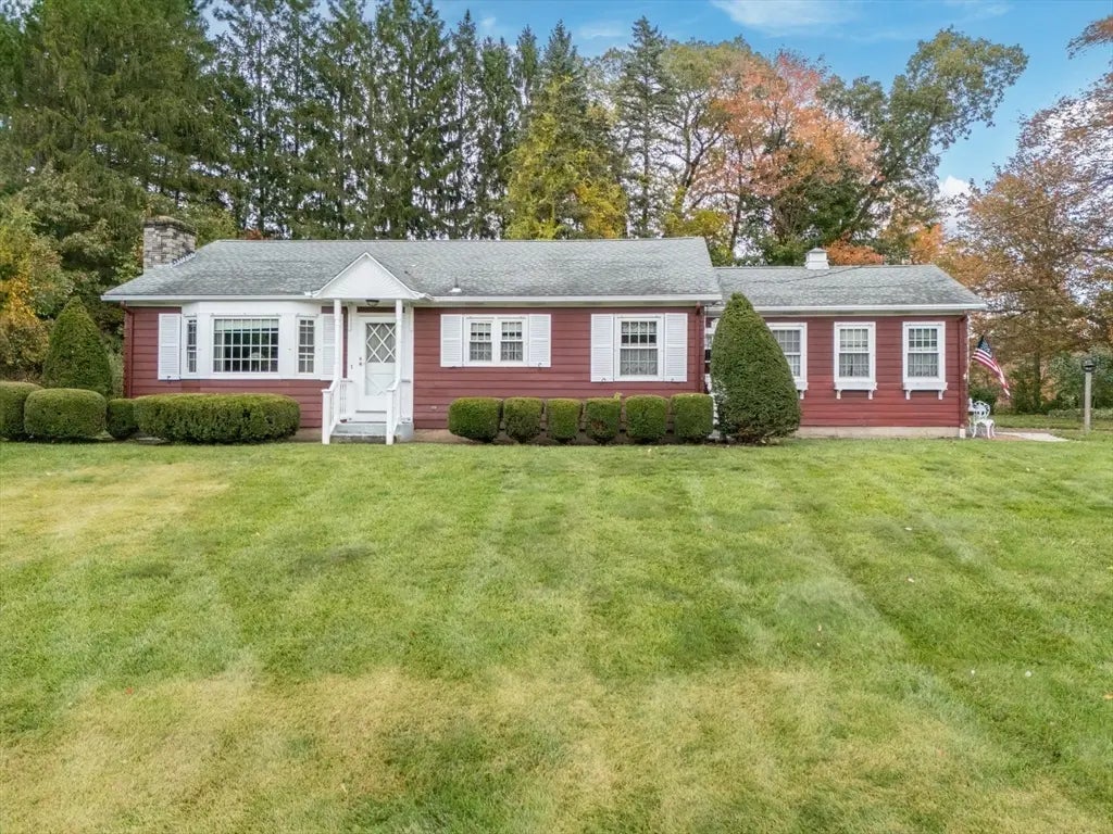 This beautiful ranch sits on a hill with a meticulously-kept, oversized yard (almost an acre) featuring a retaining wall, two sheds & wildlife in the backyard. Boasting 2 bedrooms & 1.5 baths, this home has charm & style. As you walk through the side door into the 3 season porch, you will appreciate the natural light and its ideal location. The spacious kitchen features ample cabinet space, a built-in desk, & a dining area. Both bedrooms are roomy & include hardwood flooring with the potential for a walk-in closet or a home office. With cold weather coming, don’t miss the opportunity to cozy up by the fireplace & enjoy the large living room. The basement has an abundance of storage, a bar, finished room, & a ½ bathroom. Additional features include a Buderus furnace (2014), newer oil tank & hot water heater, & a 1 car garage. You’ll love all this home has to offer & its convenient location to the MA Pike, shopping, & restaurants. This property is truly one level living at its best!